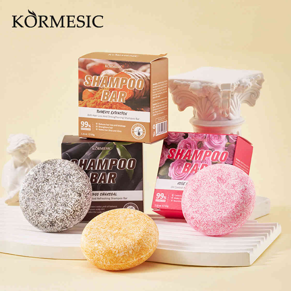 KORMESIC 植物萃取洗髮皂,嚴選五種天然植物精華,打造專業級頭皮護理。每塊皂均蘊含99%高純度植萃成分,溫和清潔的同時深層滋養頭皮與髮絲。您可以根據個人頭皮需求,選擇特定功效的款式:茶樹控油去屑、薰衣草舒緩止癢、玫瑰蓬鬆柔亮、竹炭深層淨化,或薑黃防脫強韌。綿密泡沫能輕鬆滲透髮根,徹底帶走多餘油脂與老廢角質,用後頭皮清爽舒適,髮根豐盈立體,重現秀髮健康光澤。天然低刺激配方,伴隨清新植萃香氛,為您帶來從頭皮到髮梢的愉悅潔淨體驗。