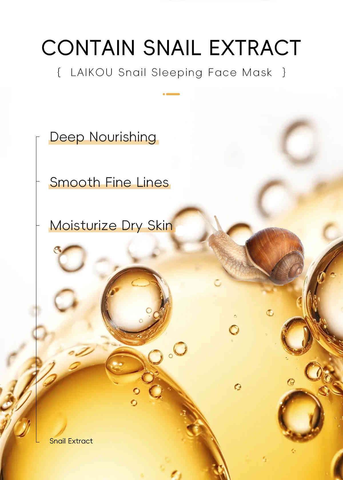 蝸牛萃取精華:緊緻肌膚、撫平細紋,提升肌膚彈性。