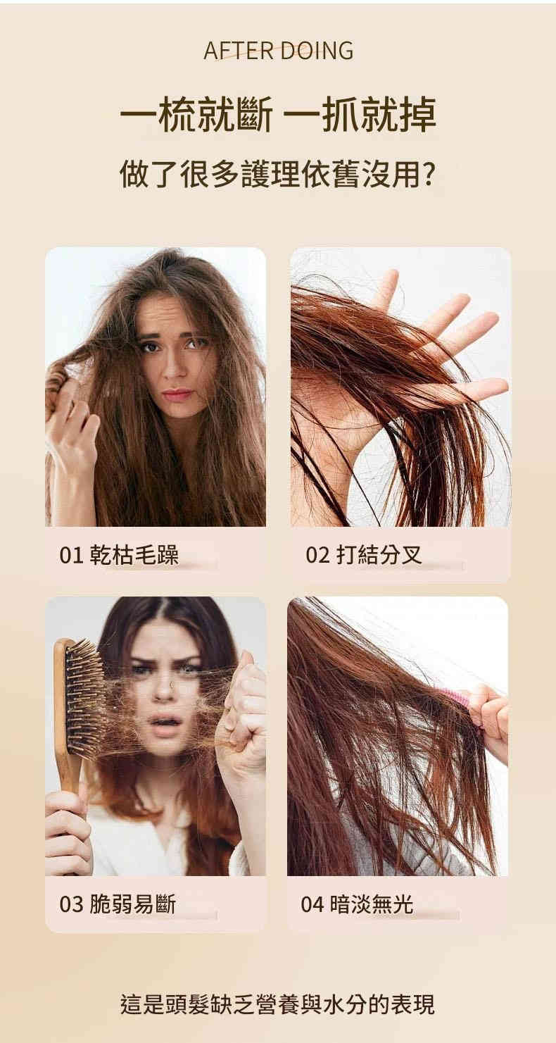多效修護:撫平毛躁、改善分岔、強韌髮質,恢復秀髮光澤與柔順。
