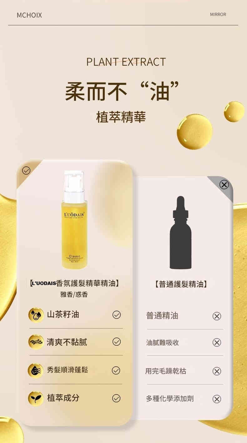 L’UÔDAIS 經典護髮精油,專為乾枯、毛躁、受損髮質設計,融合香氛藝術與植萃修護力,讓每一次護理都成為奢華享受。