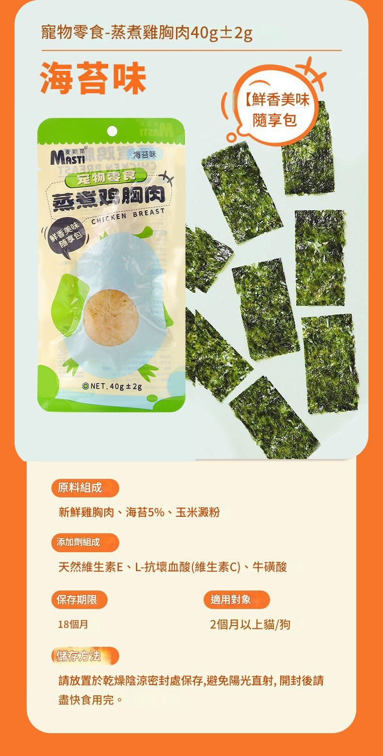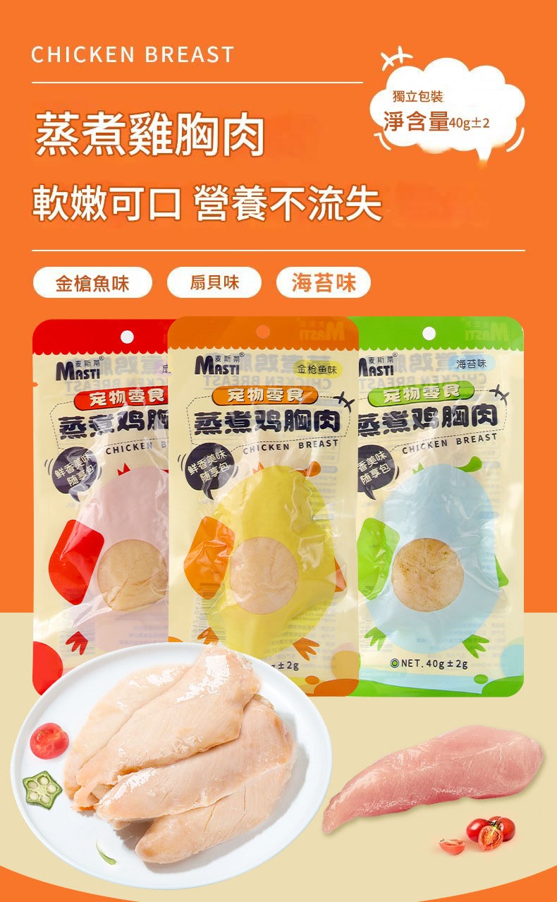 Masti 寵物即食蒸煮雞胸肉40g/包-貓狗通用