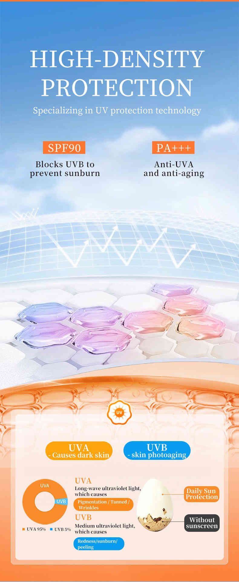 SPF90+:高效隔離 UVB,防止肌膚曬傷、泛紅、脫皮。