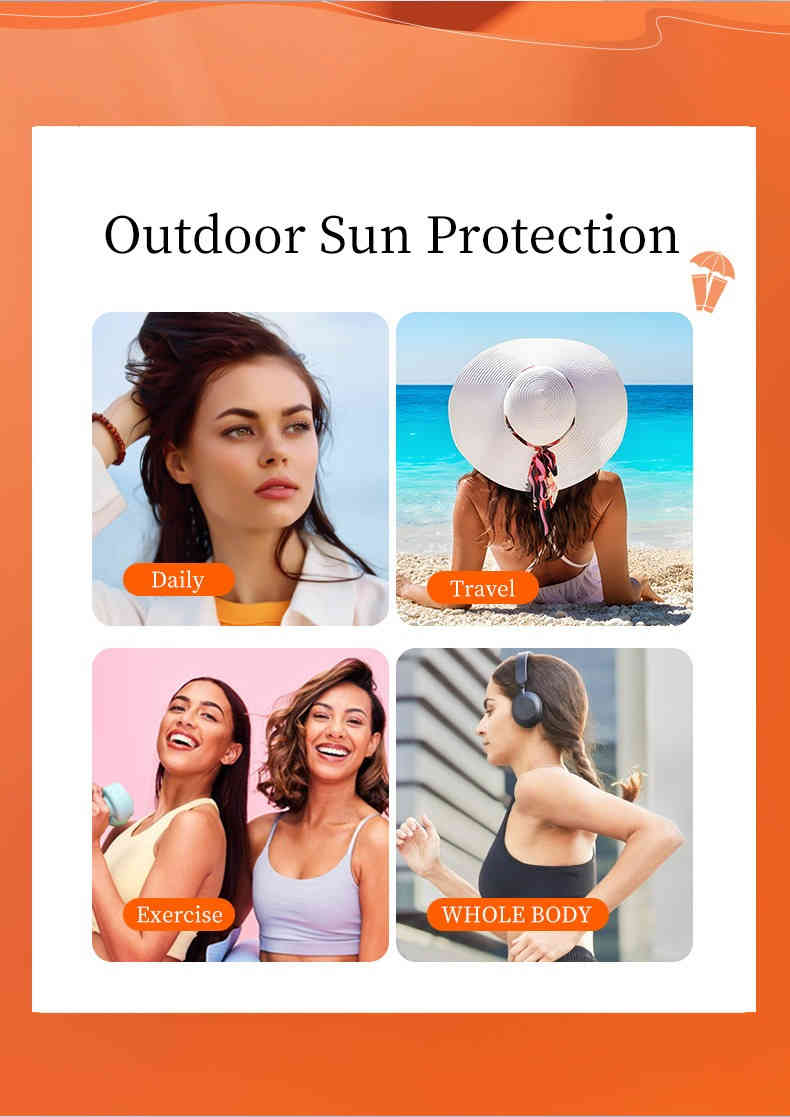 不僅適用於臉部,更可輕鬆塗抹於手部、腿部、背部等全身肌膚,讓你無死角防曬,自信穿出夏日性感造型。