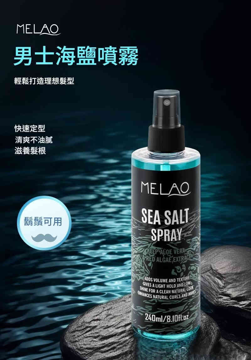 為了解決男性常見的頭髮問題——髮型塌陷、塑型困難、造型不持久,MELAO 推出專為男士設計的 海鹽噴霧,結合天然植物精華與現代造型科技,讓你隨時保持清爽有型的自然髮感。