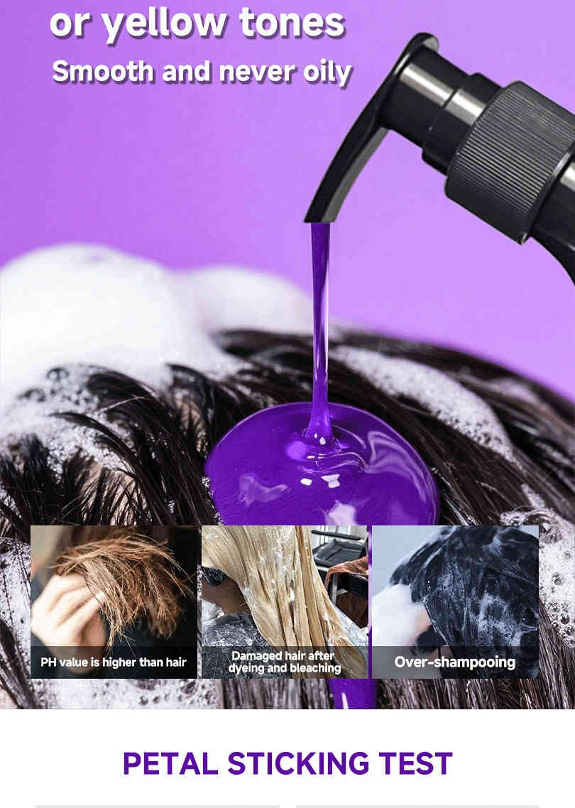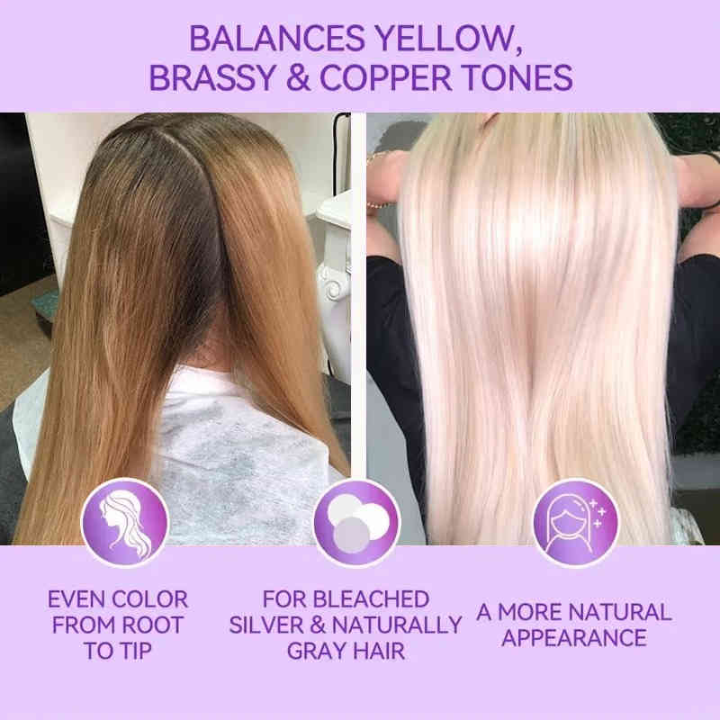 ▸ 強效去黃抗銅色:富含高濃度紫色色素,能迅速中和漂染後常見的橘黃、銅色調,使亞麻灰、銀色等冷色系髮色更持久透亮。