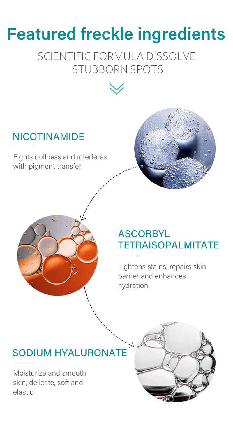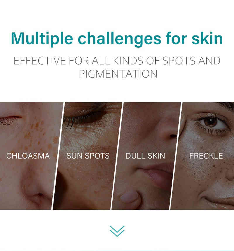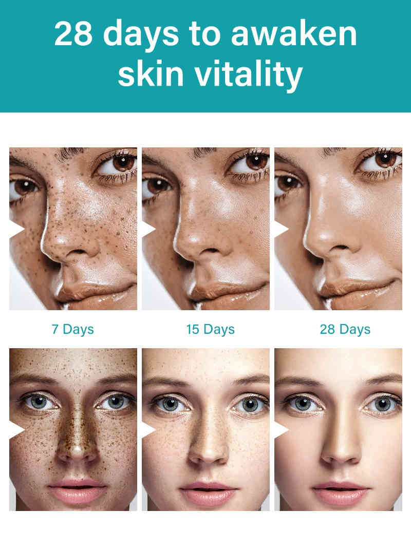 有效改善黃褐斑、曬斑、雀斑、暗沉膚色等問題,從源頭阻斷黑色素,實現全面提亮。 - 【三重淡斑成分】科學配比,高效滲透