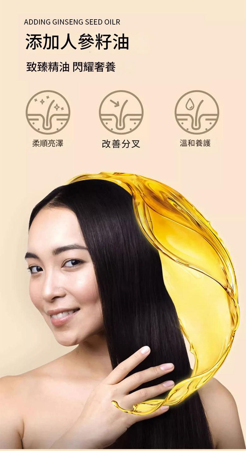 ✔ 添加人參籽油:改善分岔、柔順髮絲,賦予秀髮奢華光澤。