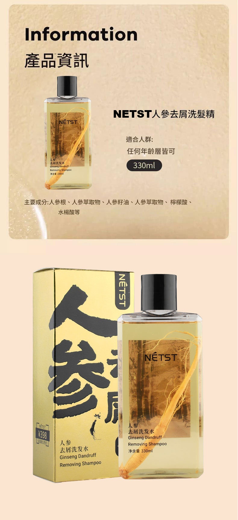 NETST 人參去屑洗髮水 330ml/支