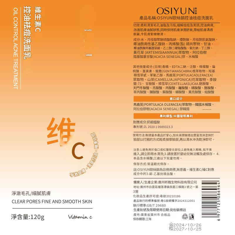產品名稱:OSIYUN歐絲韻控油祛痘洗面乳