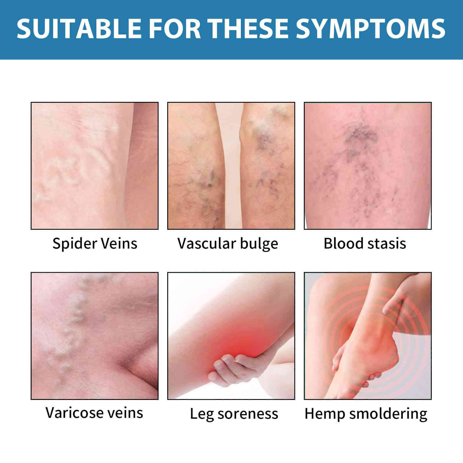 適用於: 靜脈曲張、蜘蛛網紋、血管突出、腿部酸痛、麻木灼熱等不適感的輔助舒緩與改善。