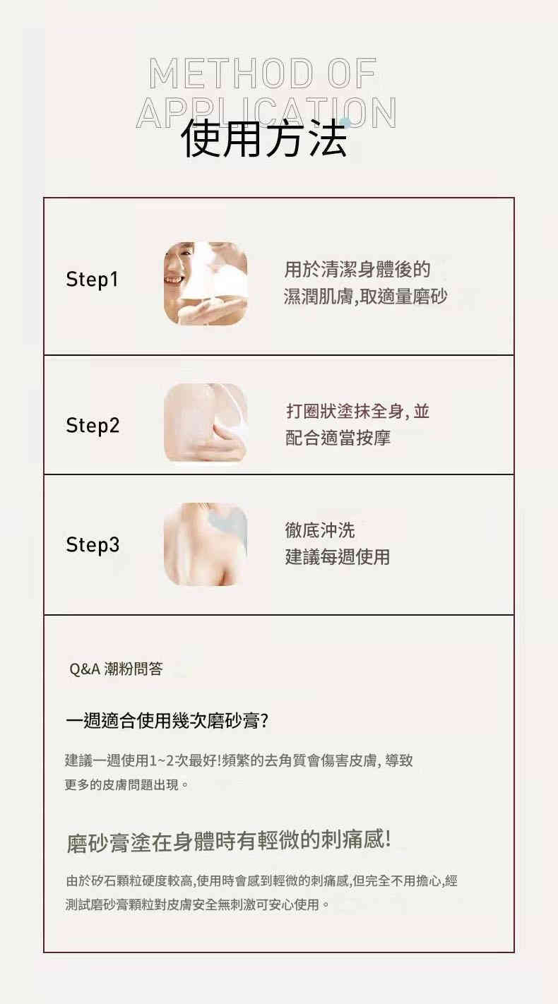 三重功效合一:集磨砂膏、沐浴乳、身體乳於一身,懶人護理首選