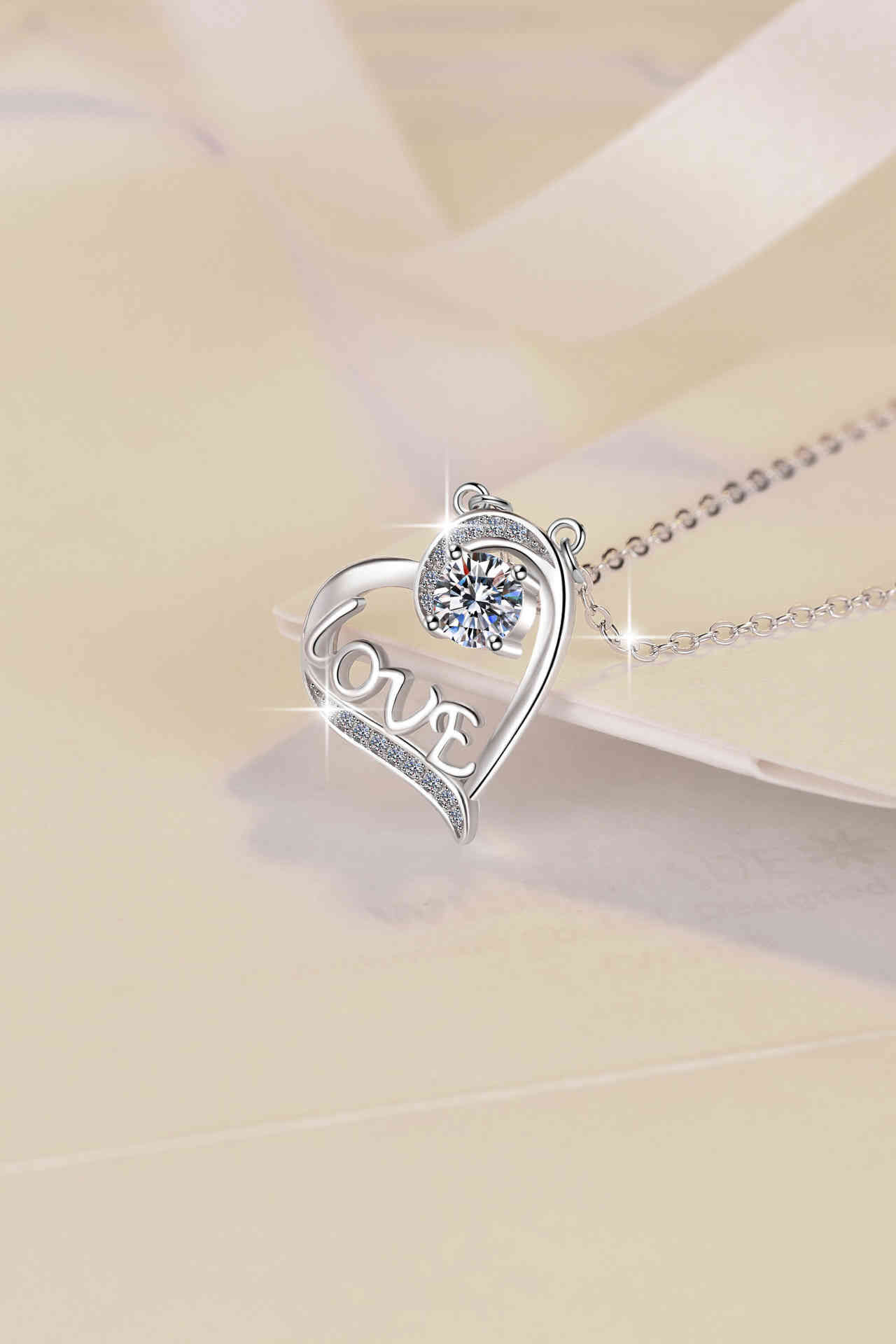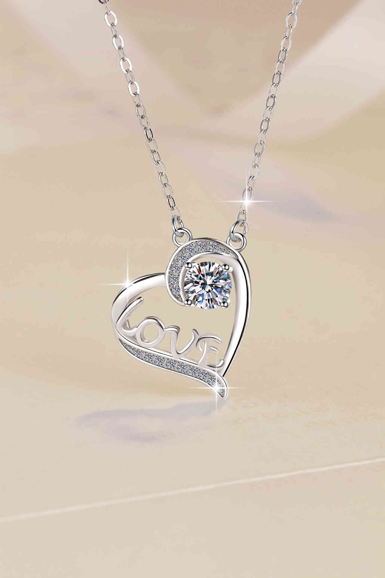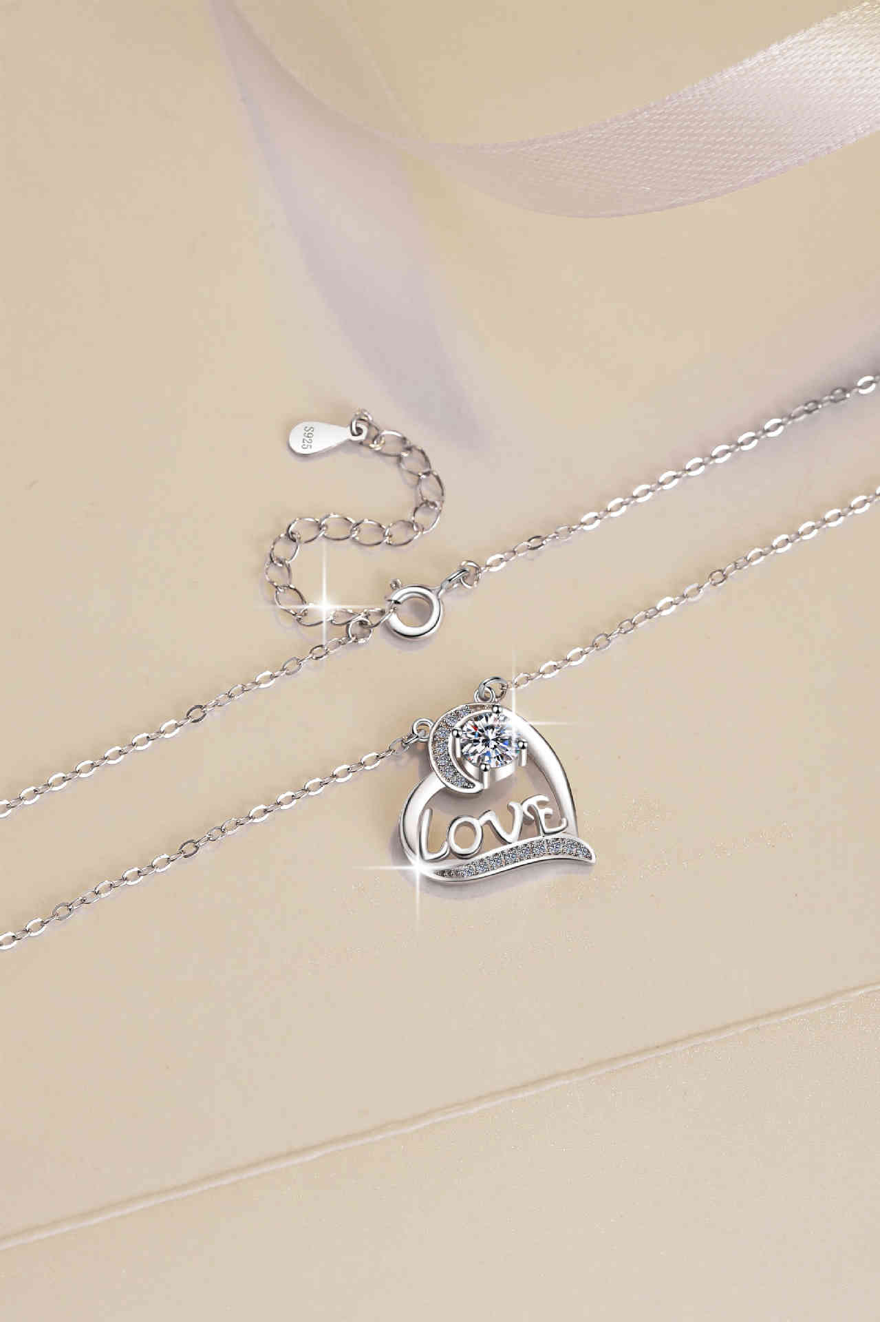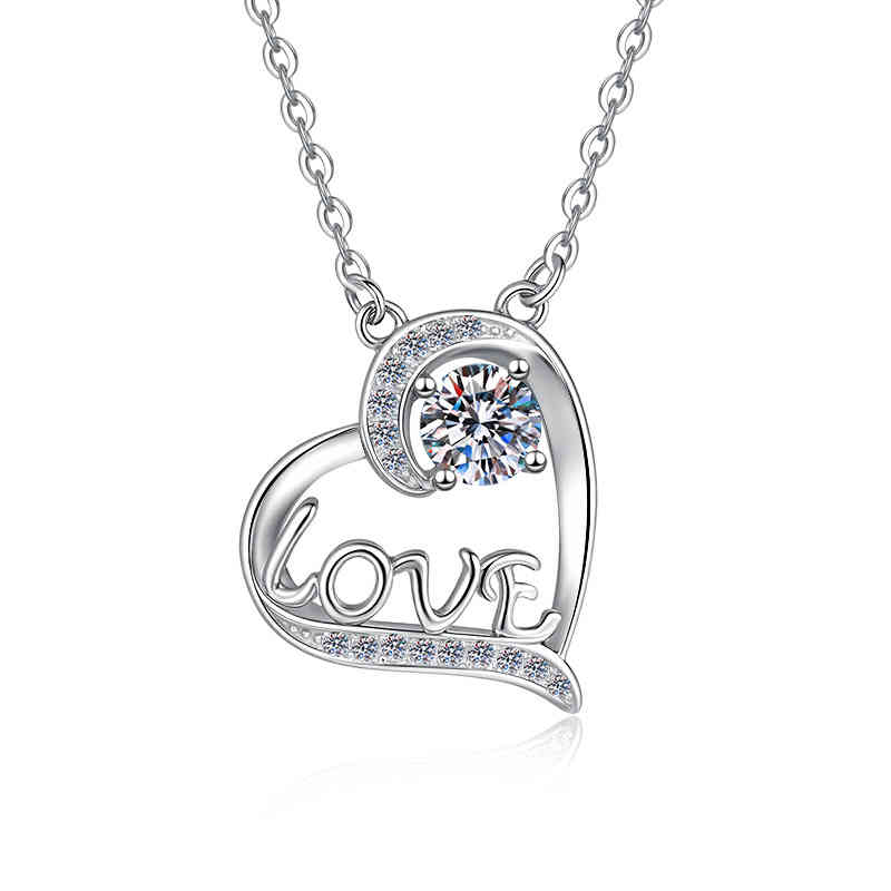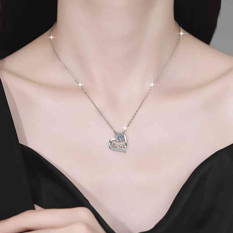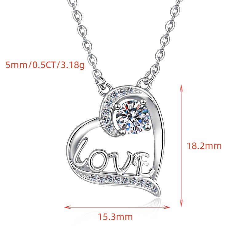 s925純銀心型莫桑鑽吊墜love字母鎖骨鏈項鍊