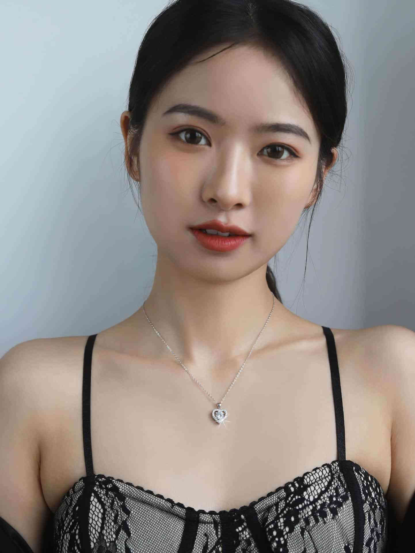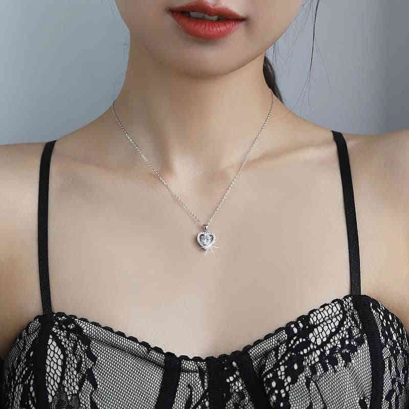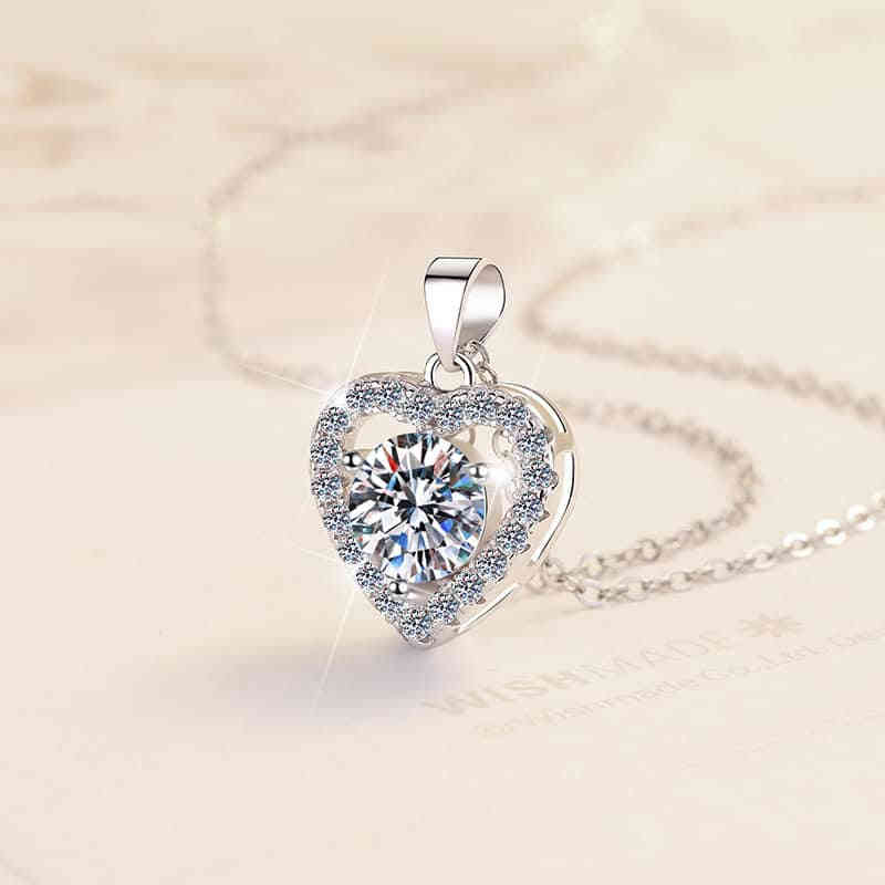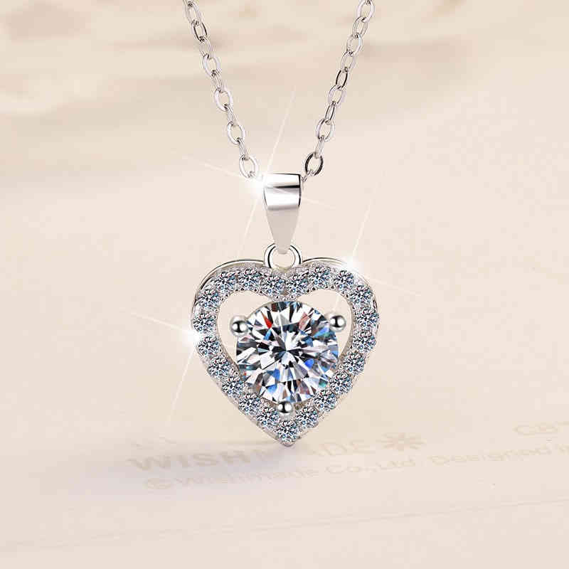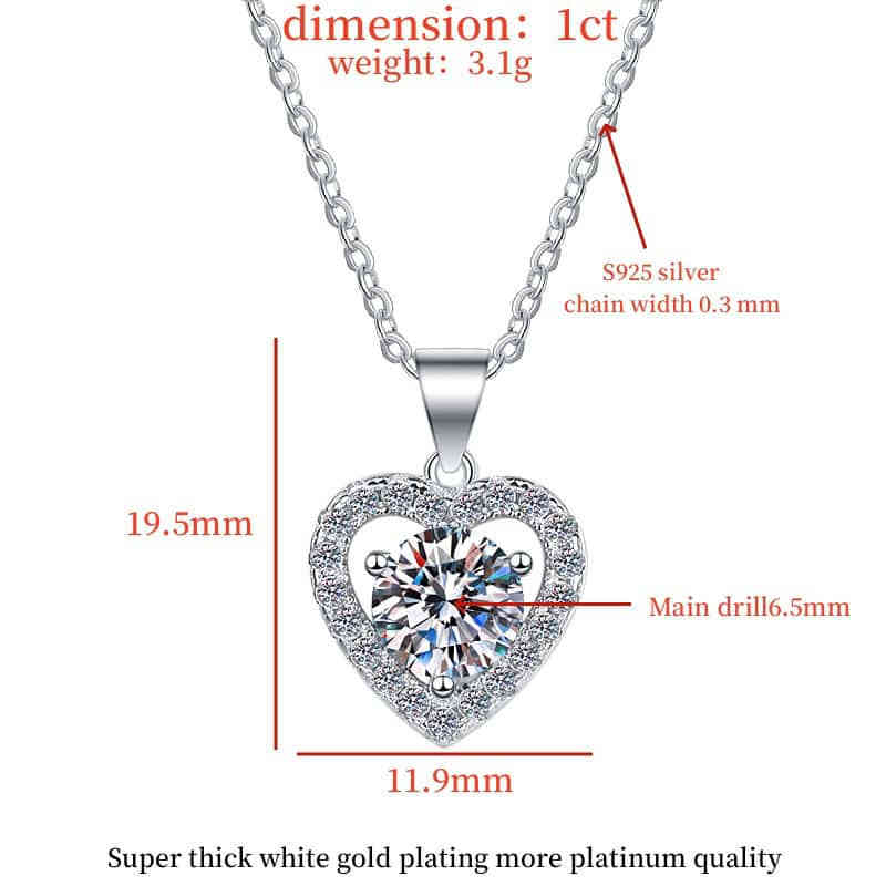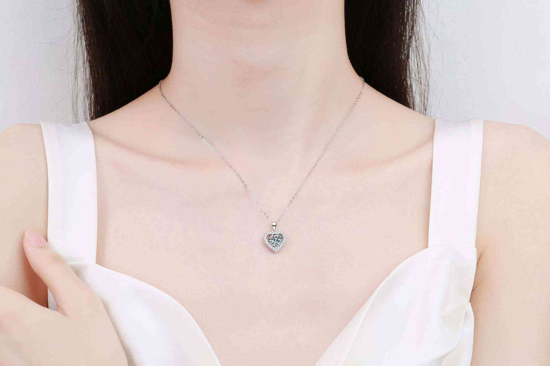 S925純銀心形1卡D色莫桑鑽吊墜頸鍊