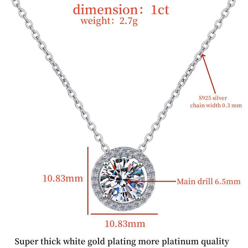 s925純銀時尚輕奢簡約莫桑石圓形飾品吊墜鎖骨鏈頸鍊