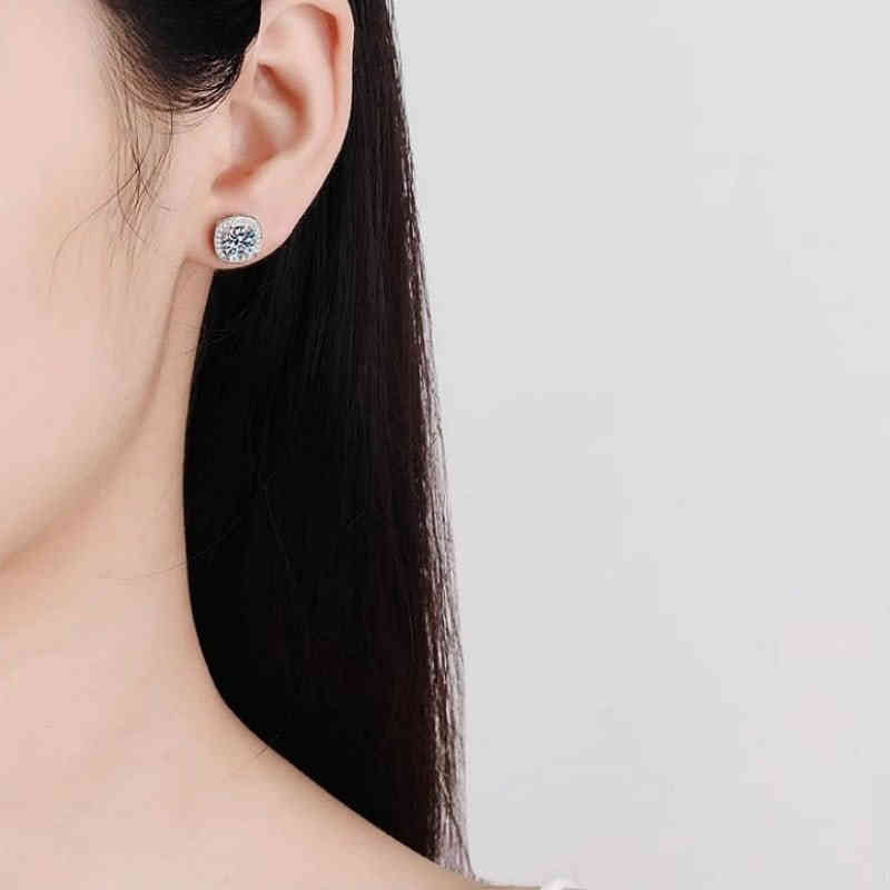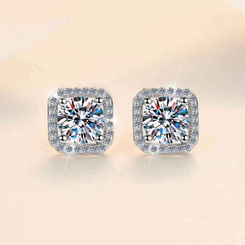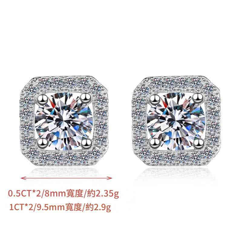 s925純銀簡約方包方形D色莫桑鑽耳環耳釘