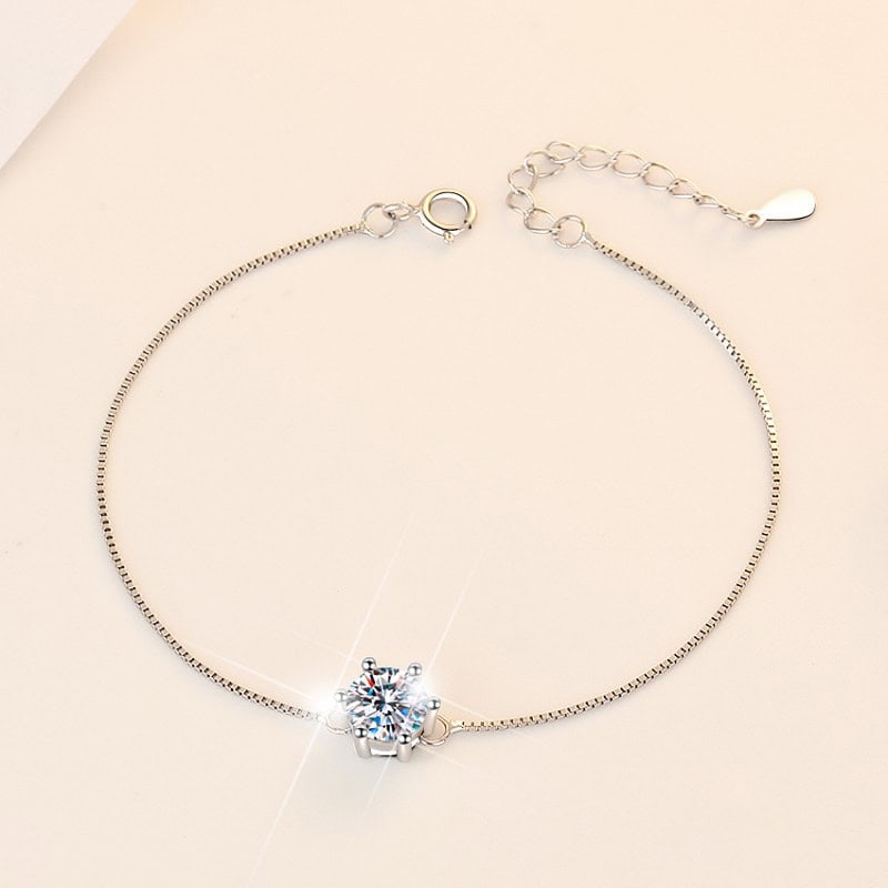 S925純銀經典六爪1卡莫桑鑽手鏈