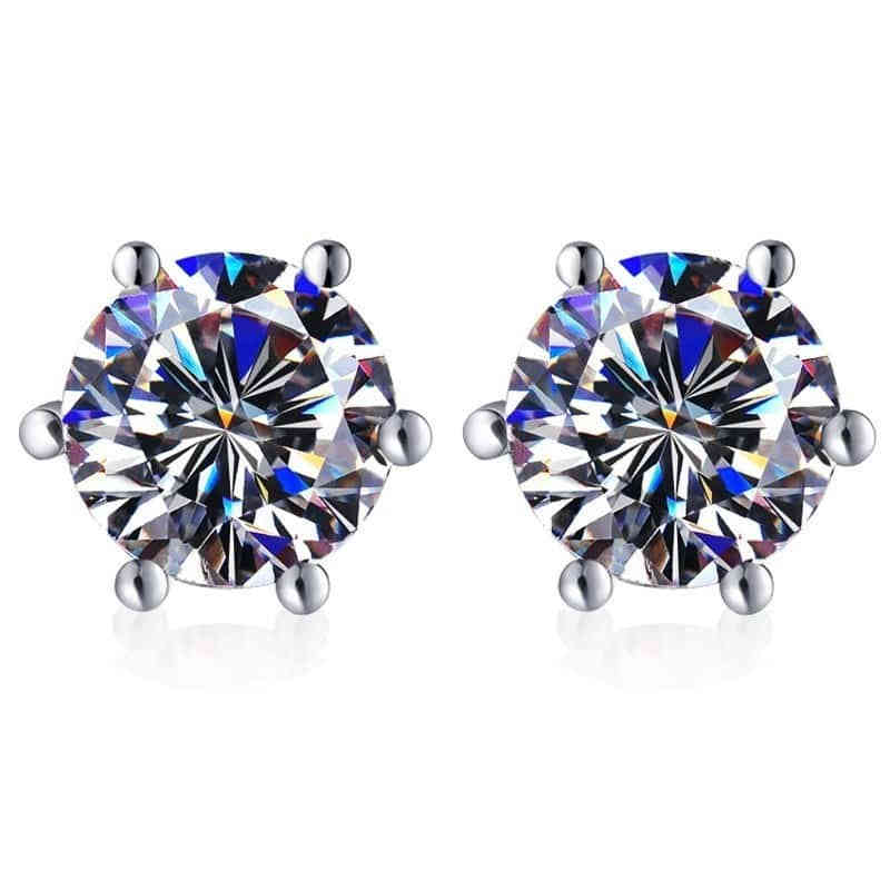 S925純銀經典皇冠六爪莫桑耳環耳釘