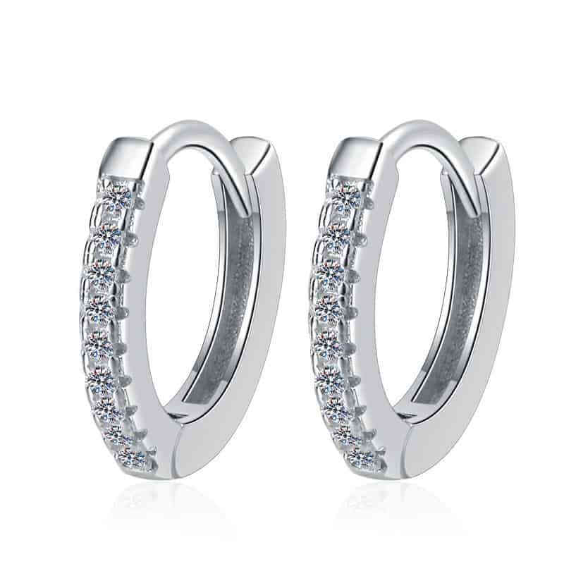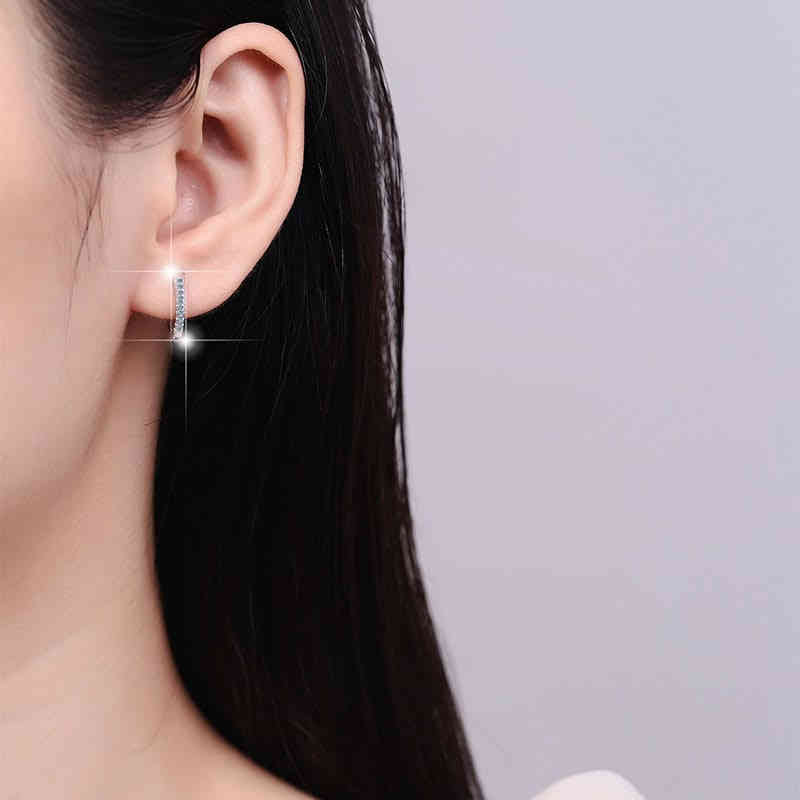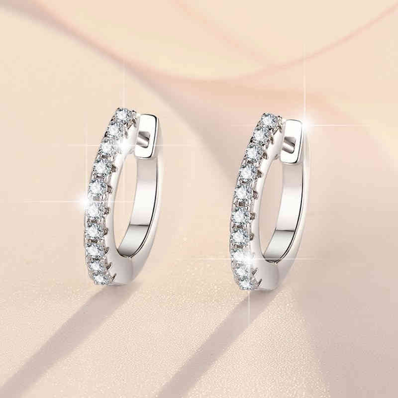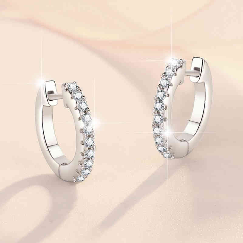 s925純銀韓風圓形幾何耳扣D色莫桑鑽耳環耳釘