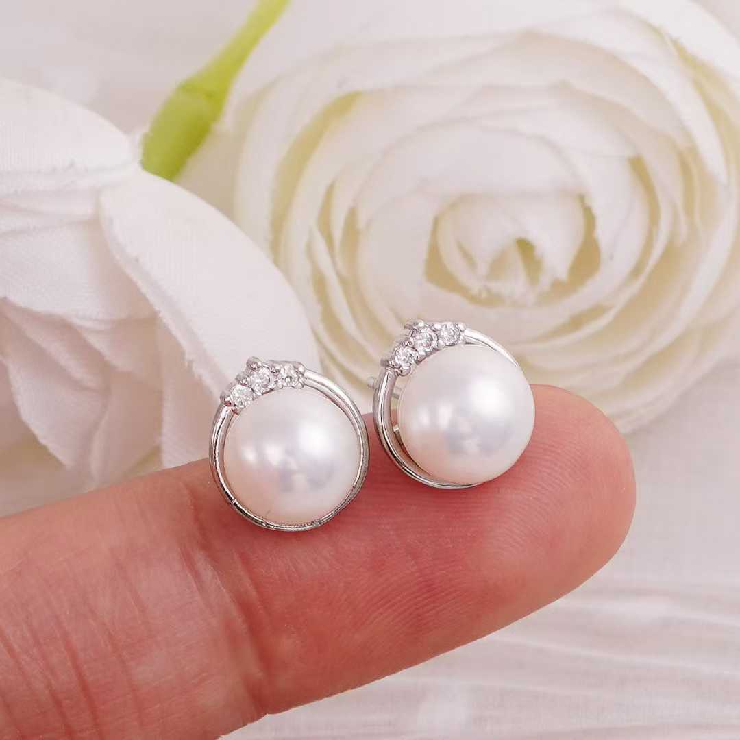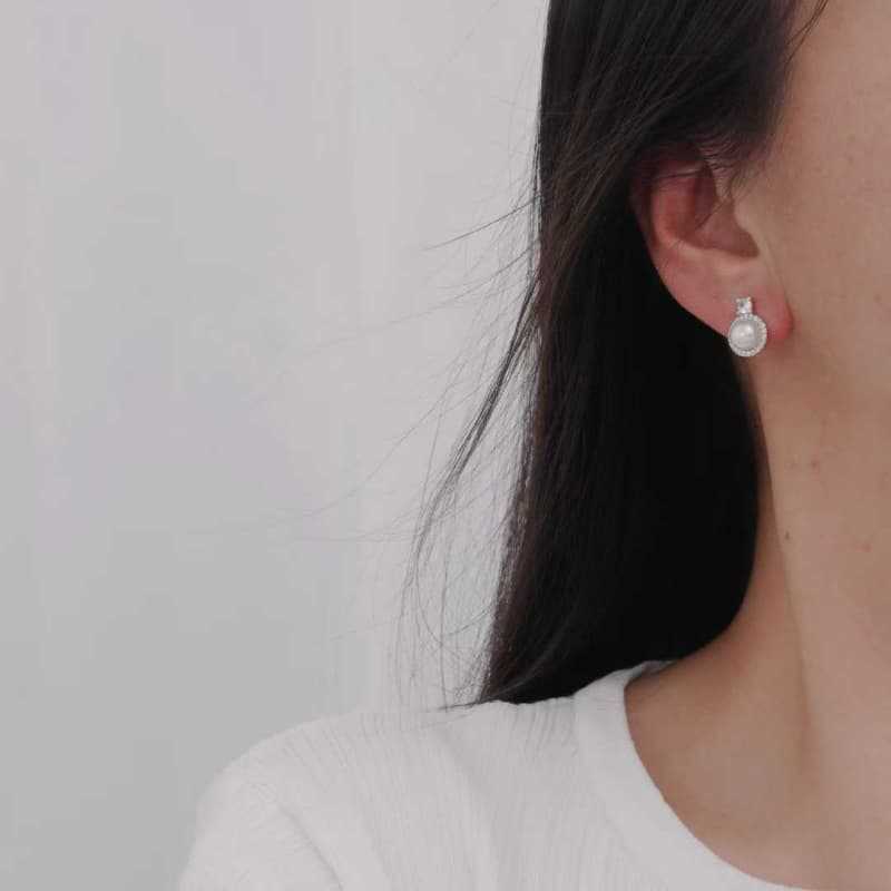 s925純銀 淡水珍珠鑲鑽精緻耳釘S925純銀 淡水珍珠鑲鑽精緻耳釘