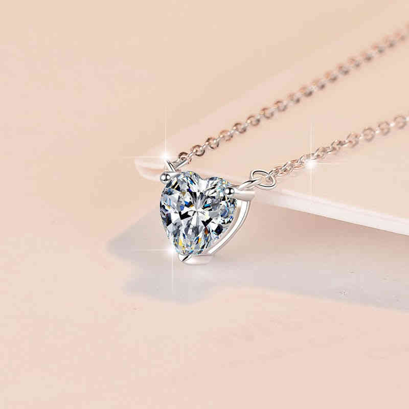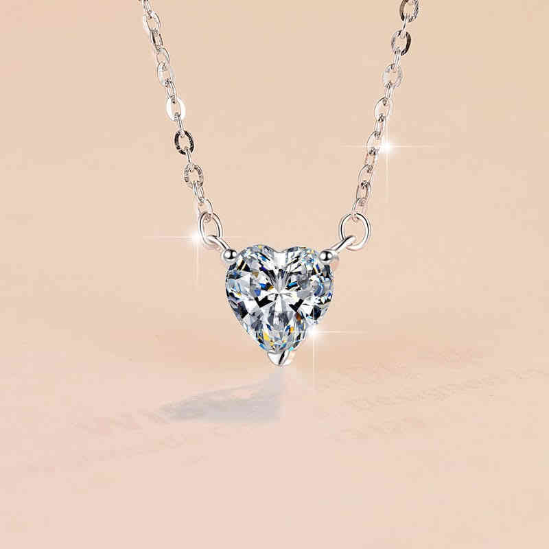 S925純銀1卡愛心莫桑鑽吊墜頸鍊