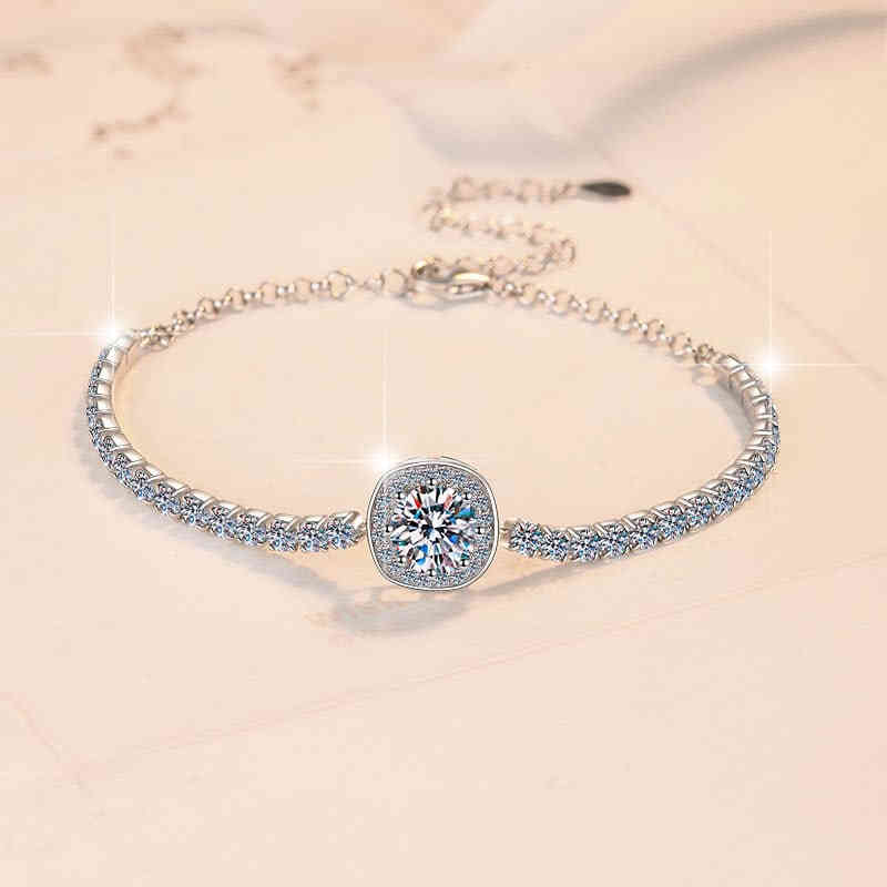 S925純銀1卡莫桑鑽方包手鏈