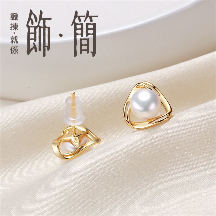 s925銀 金色山角耳托淡水珍珠耳釘 s925銀 金色山角耳托淡水珍珠耳釘 s925銀 金色山角耳托淡水珍珠耳釘