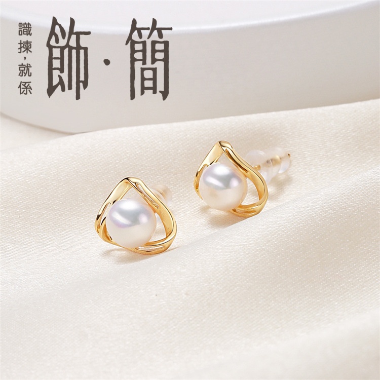 s925銀 金色山角耳托淡水珍珠耳釘s925銀 金色山角耳托淡水珍珠耳釘
