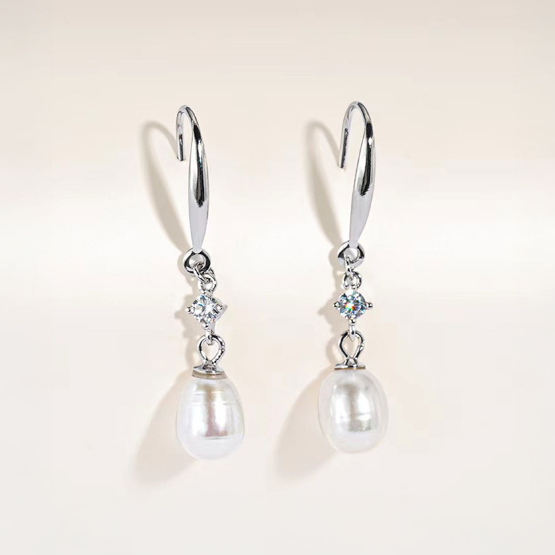 想要溫柔又不張揚的光芒,這對S925銀淡水珍珠垂墜耳環會是很好選擇。修長耳勾順著耳廓自然垂下,中段點綴一朵小巧鋯石花,最後以一顆約7mm天然淡水珍珠收尾,走路時輕輕擺動,像是在耳邊晃動的一滴月光,低調卻非常耐看。
