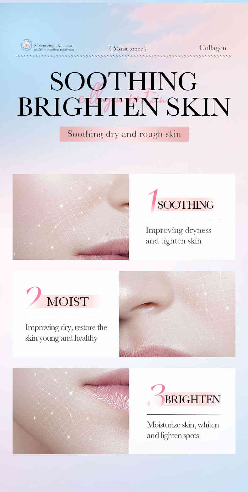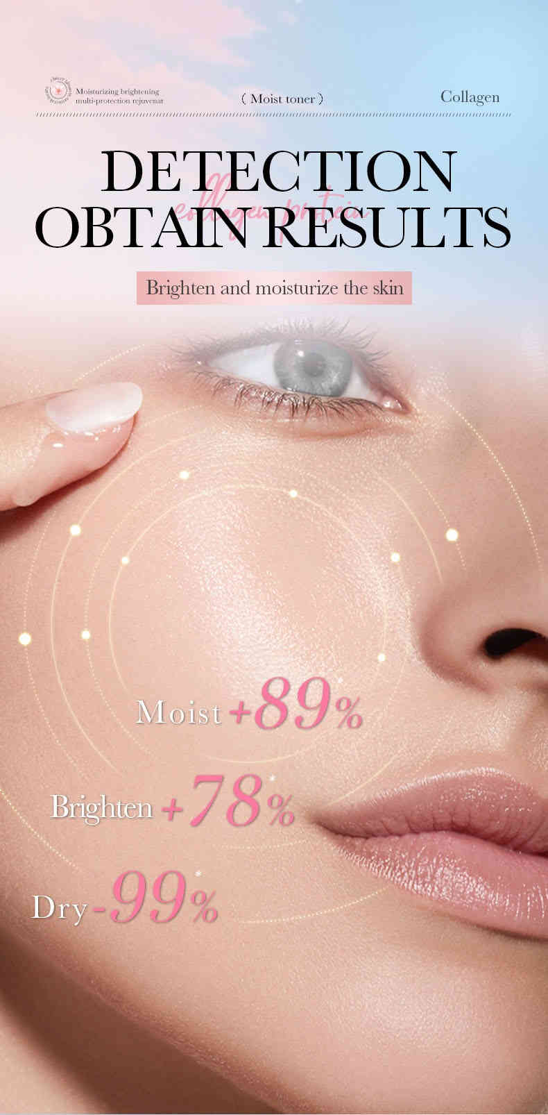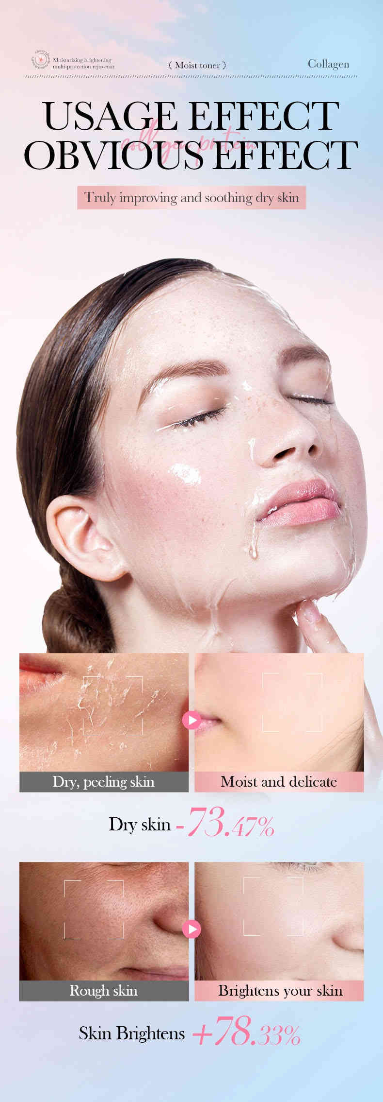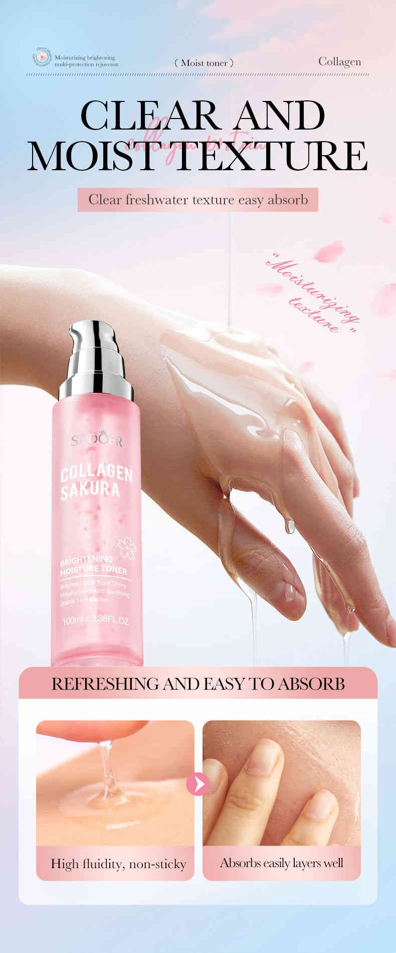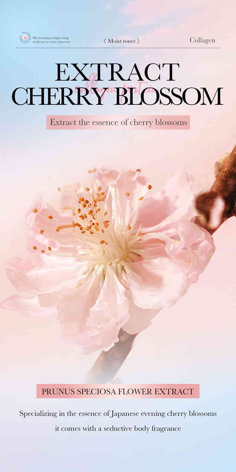 雙重亮膚保濕:櫻花精萃 + 水解膠原蛋白,深層滲透補水,提升肌膚透亮度+78%,改善暗沉與乾燥。