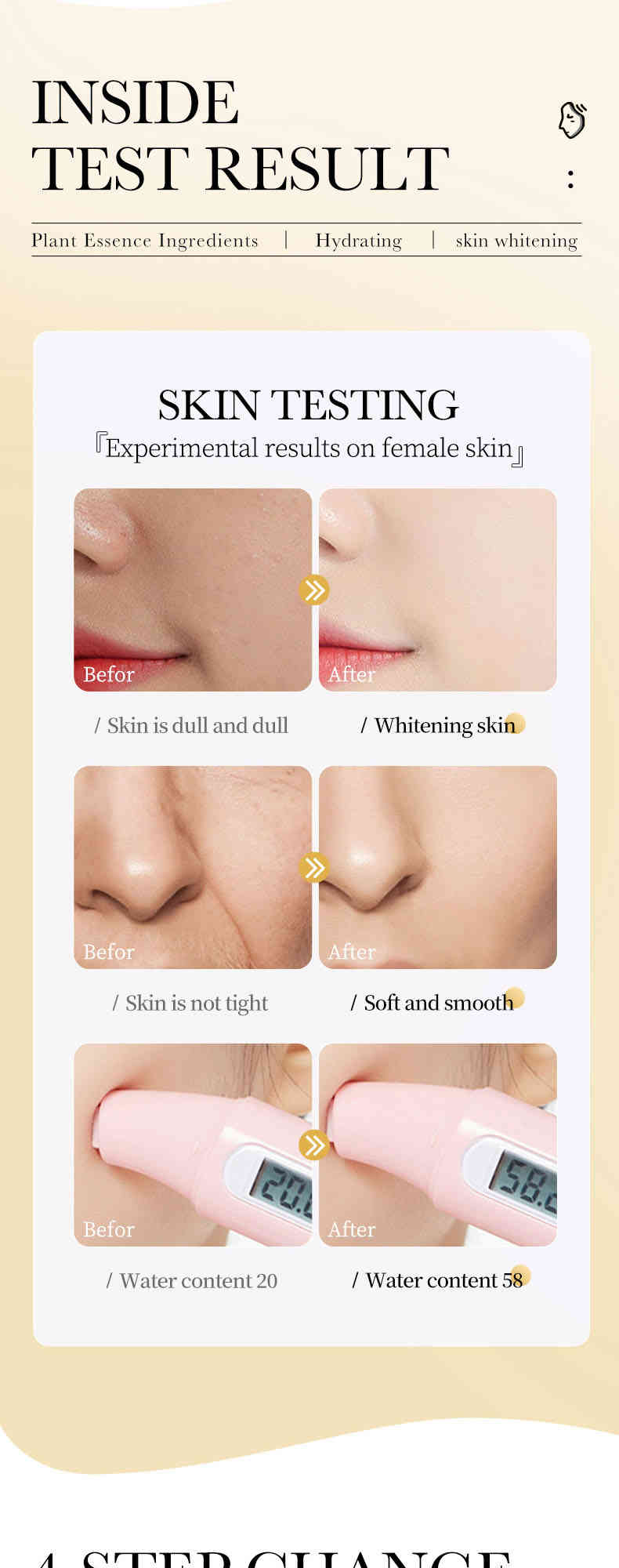 亮白透亮:維他命C抑制黑色素,提亮膚色,使肌膚白皙有光澤。