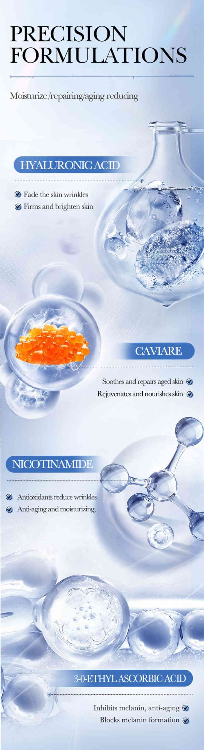 ✔ 高效抗老修護 – 融合魚子醬精萃與玻尿酸,深層滋潤同時促進膠原蛋白,緊緻肌膚、淡化細紋(眼周、法令紋等)。