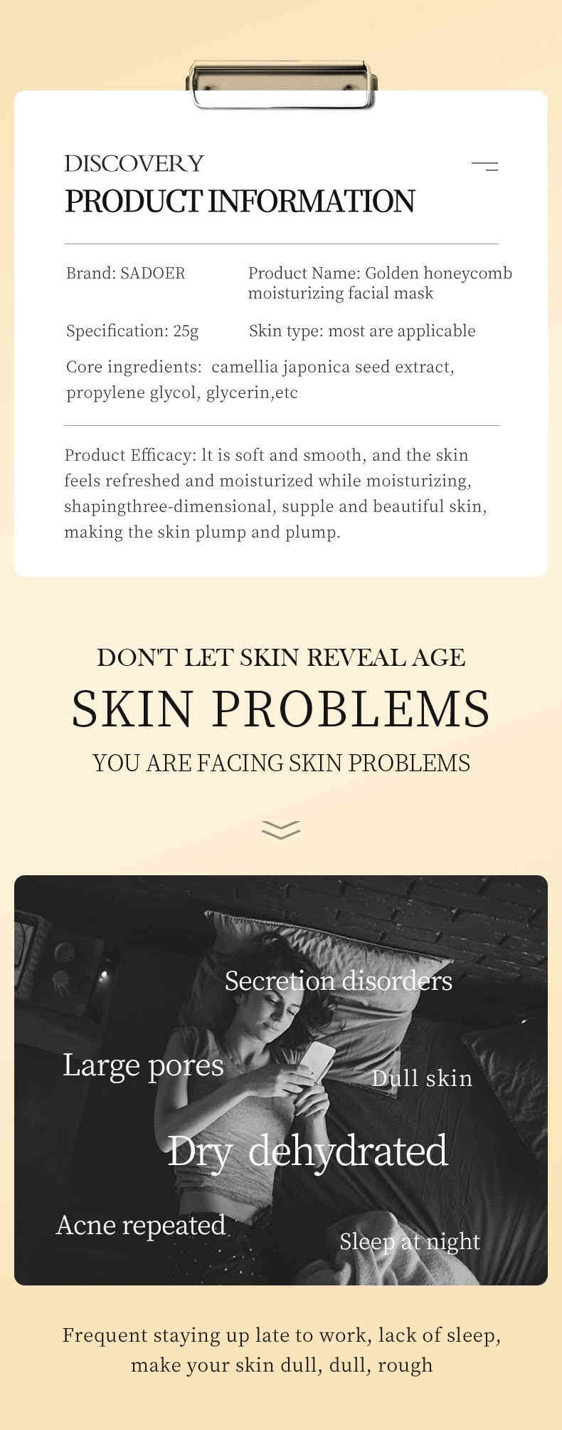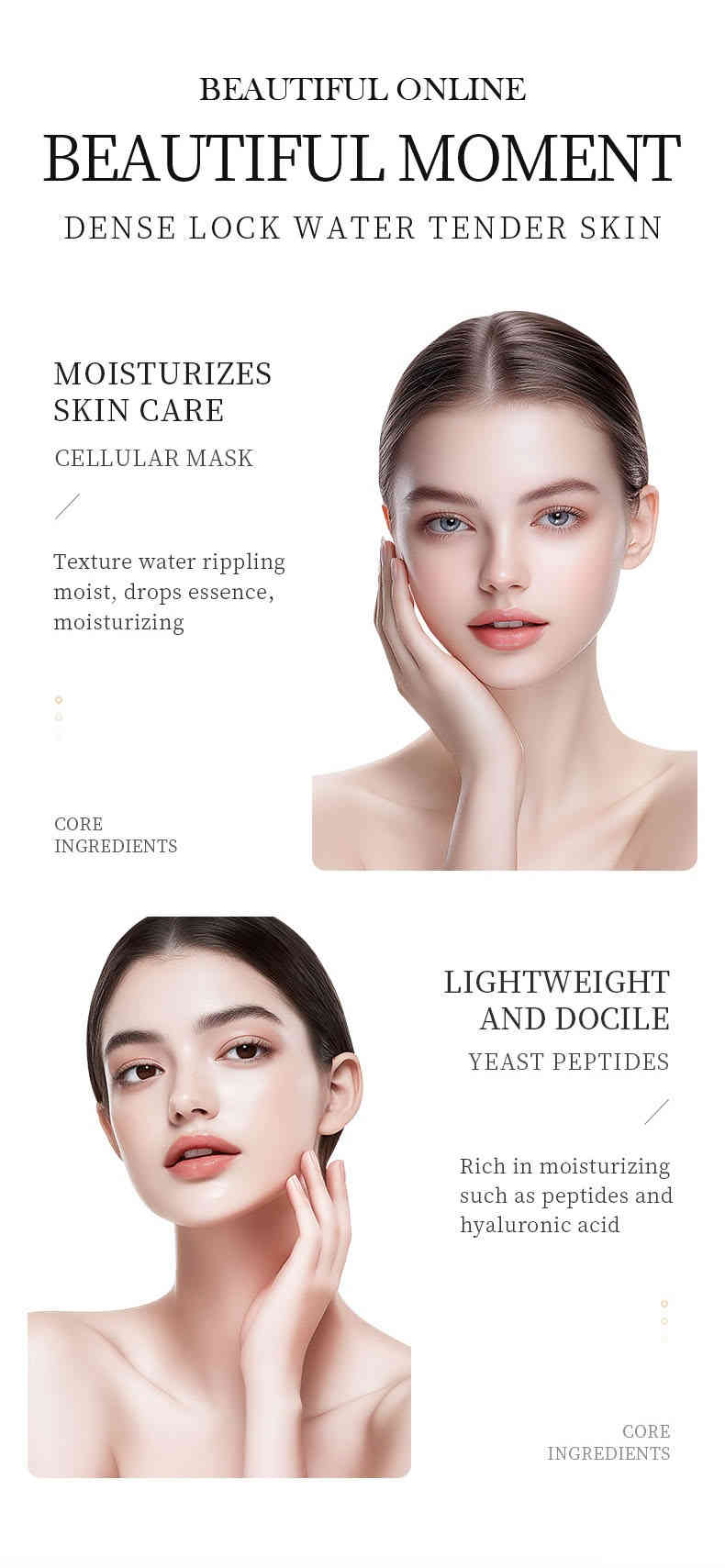 天然植萃成分:蜂窩萃取、山茶花提取物、甘油等,溫和保濕,調理油脂,重塑彈潤美肌。