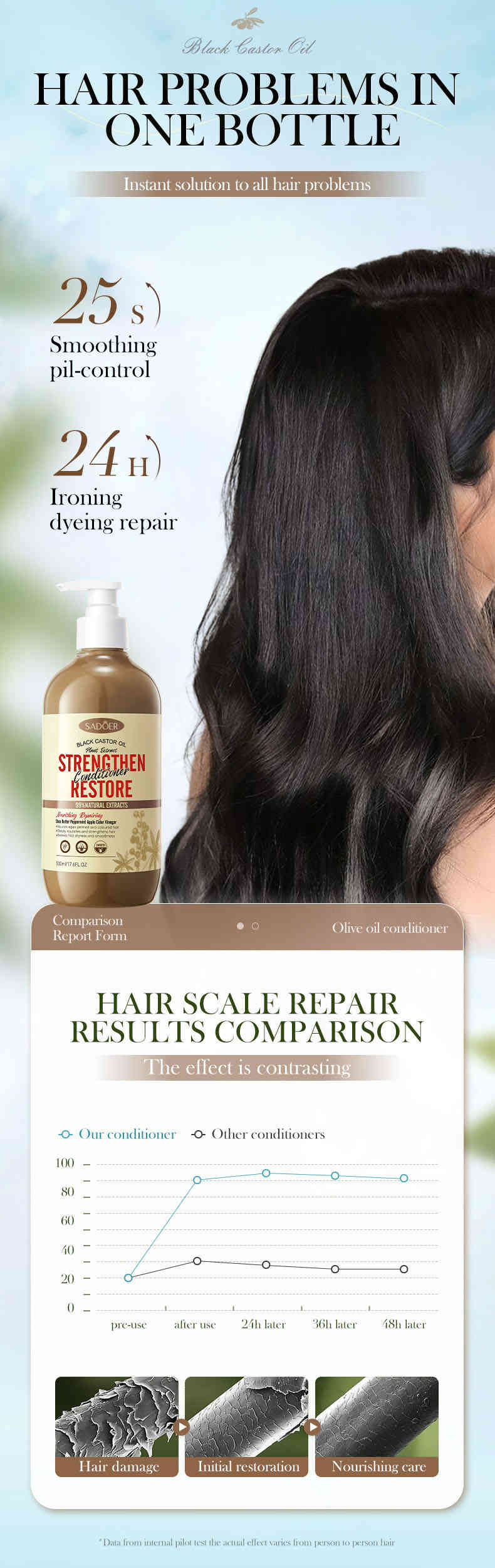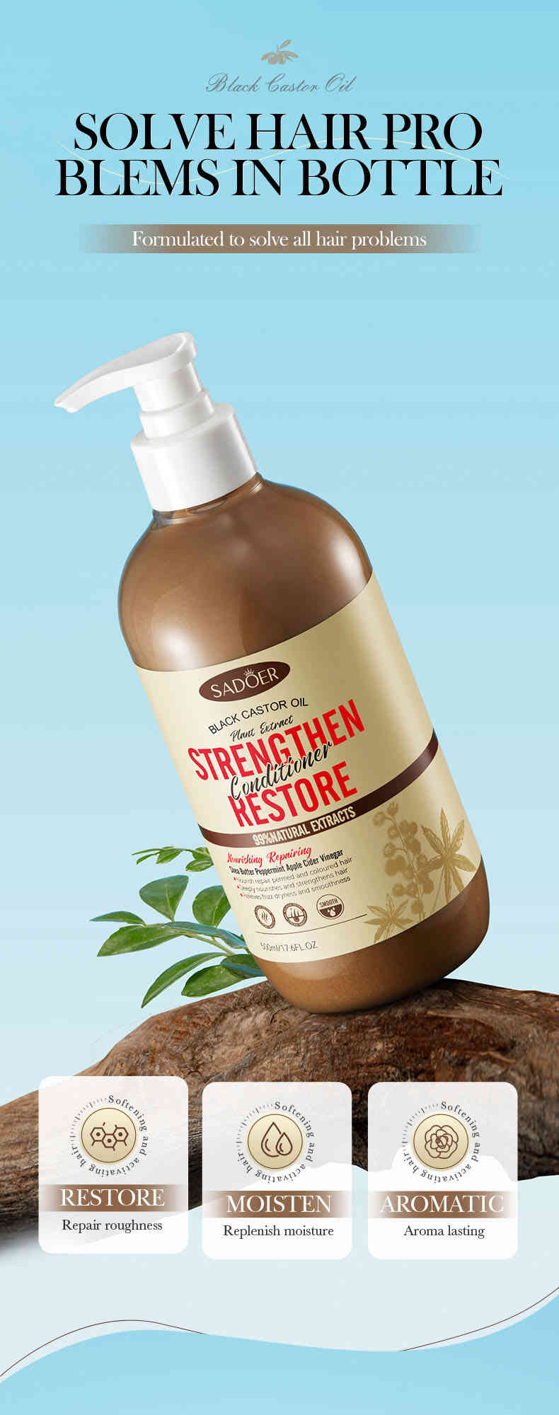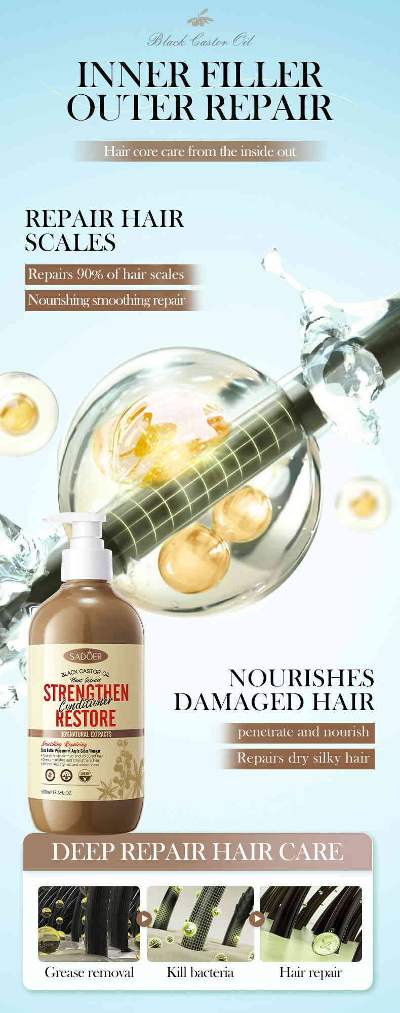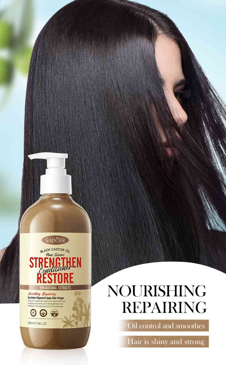 SADOER 黑蓖麻油護髮素專為受損、毛躁及乾枯髮質設計,蘊含天然黑蓖麻油、甘油及透明質酸鈉等核心成分,能夠深層修護髮絲內外結構。其獨特的雙重修護配方,從內部強化髮芯,外部修護毛鱗片,有效改善因染燙、吹風、日曬等造成的髮質問題。使用後,頭髮立即變得柔順、光澤且易梳理,長效保濕同時控制油脂分泌,帶來清爽不黏膩的體驗。