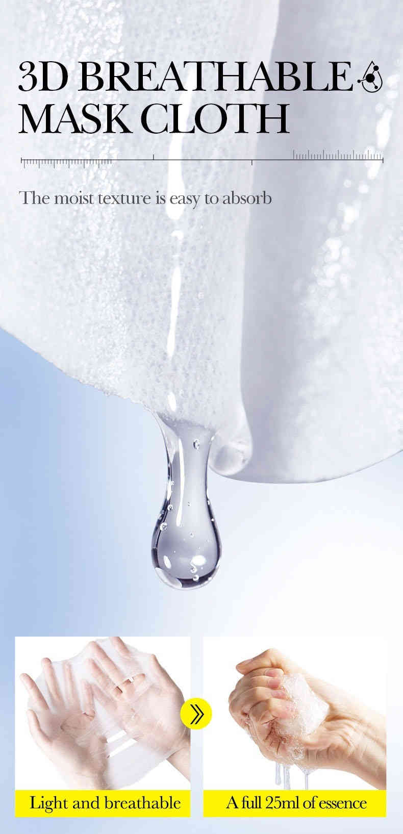 輕薄透氣、承載滿滿 25ml 精華液,完美貼合臉型,邊敷邊呼吸,吸收不悶膩。