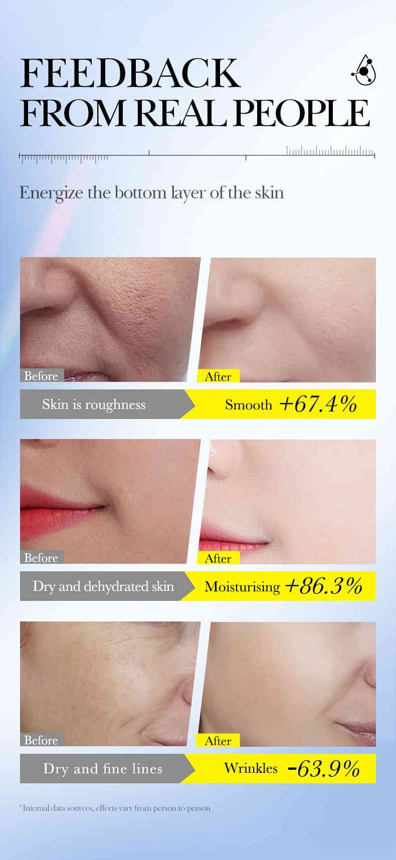 複合型玻尿酸分子層層補水,直達肌底,長效鎖水,保濕力提升 +29.68%,告別乾燥粗糙。