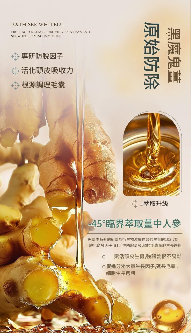 ✅ 育髮濃密:獨家 黑薑黃萃取(6-薑酚濃度達普通生薑103.7倍),促進毛囊細胞活性,延長生長週期。