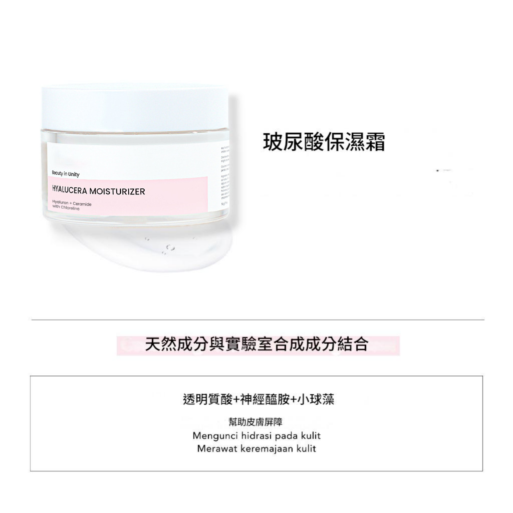 讓 Beauty in Unity 玻尿酸神經醯胺保濕霜成為您每日保養的必備品,體驗天然與科技結合的極致保濕感受,重現水潤青春的完美肌膚!