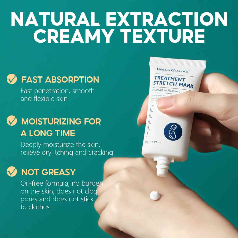 VIBRANT GLAMOUR® 專為孕期及產後媽媽設計的「妊娠紋修護霜」,採用 98% 高效預防配方,結合多重天然植物修護精華,從預防到淡化,一步到位。溫柔質地、快速吸收,給妳最安心的肌膚呵護。
