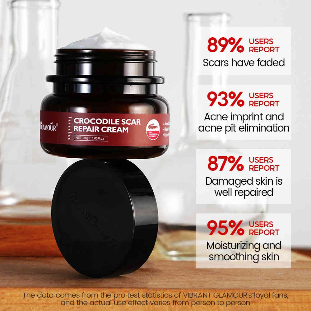 VIBRANT GLAMOUR 第二代鱷魚油修護淡疤面霜,採用日本先進科學配方,結合高活性第二代鱷魚油與積雪草、馬齒莧、蘆薈等多重修護草本成分,針對痘疤、損傷肌膚進行深層修復,淡化色素,平滑肌膚紋理。