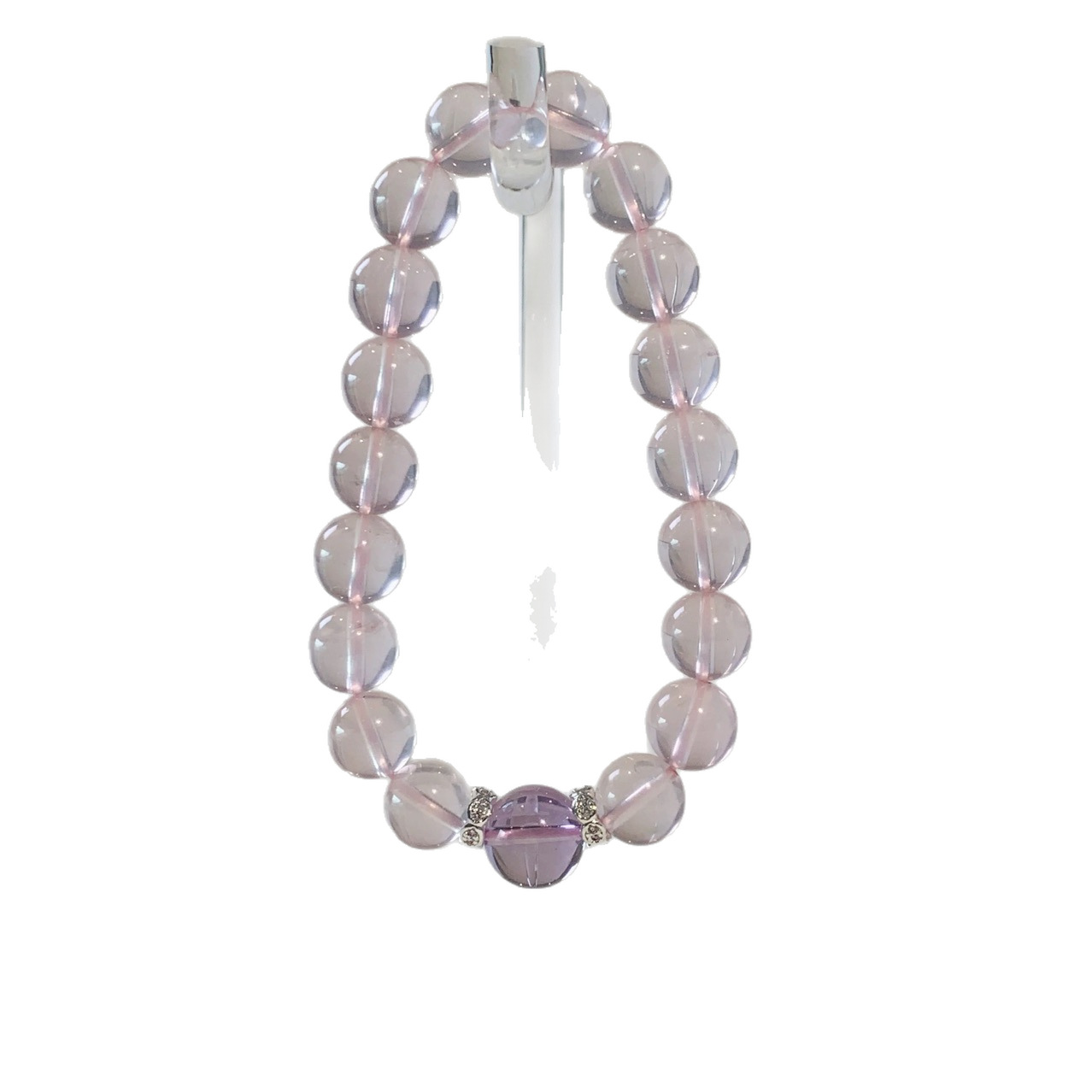 精選馬達加斯加粉晶與巴西紫水晶雙色搭配,設計感十足,溫柔粉晶與高貴紫水晶相互輝映,彰顯女性優雅與靈性能量。