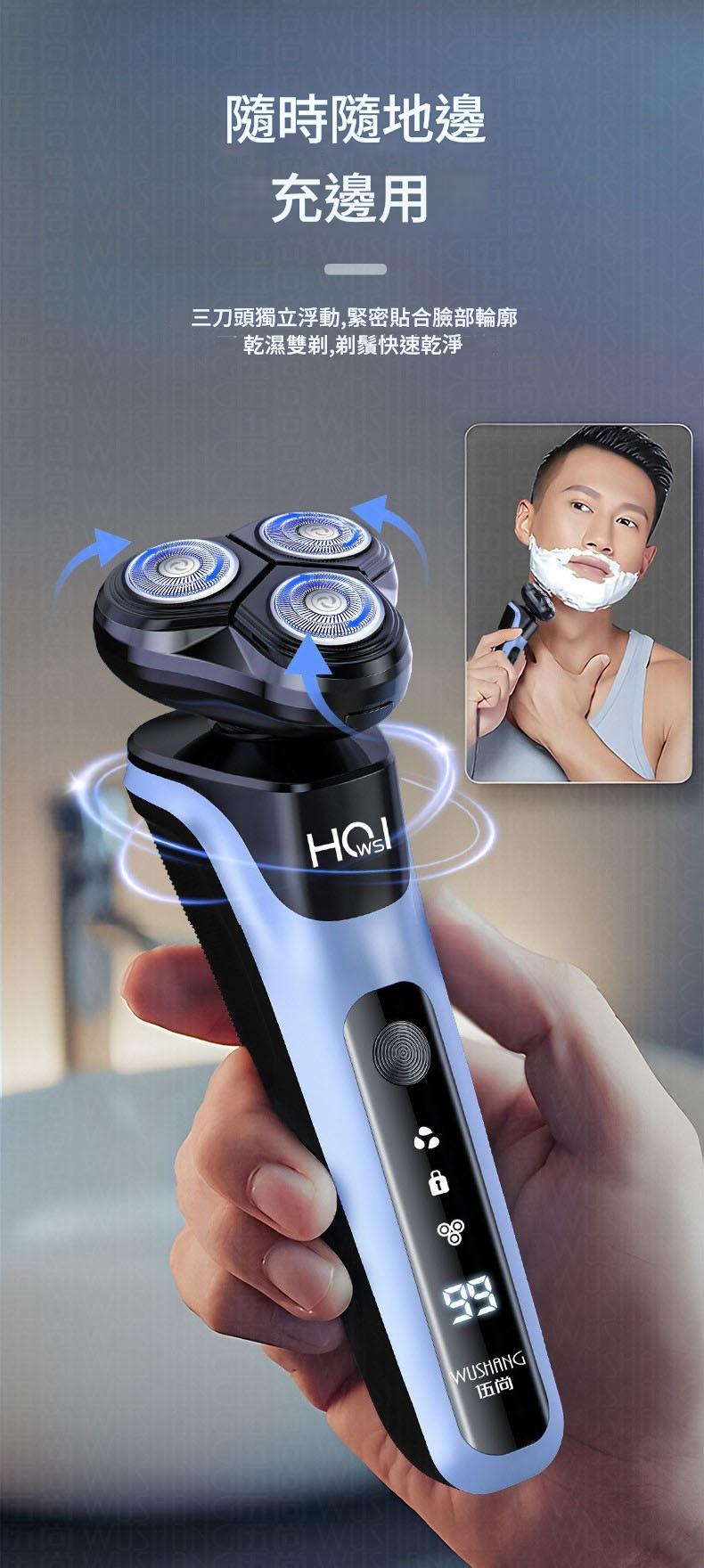 無論是差旅外出或日常使用,WUSHANG 剃鬚刀以輕巧機身與強大性能,成為你身邊的全能理容戰士!