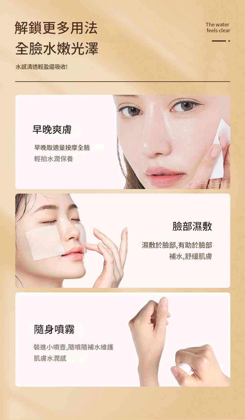 水感質地清爽不黏膩,可作為早晚爽膚水、局部濕敷,或裝入噴壺隨身補水,隨時維持肌膚水潤!