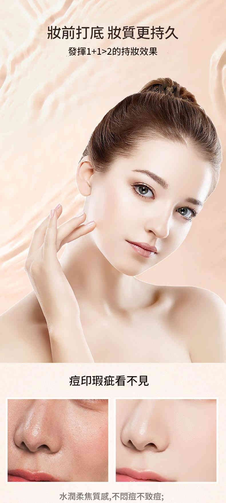 蘊含滋養成分,在潤色遮瑕的同時為肌膚提供保濕,避免乾燥緊繃,敏感肌亦適用,不悶痘不致痘。
