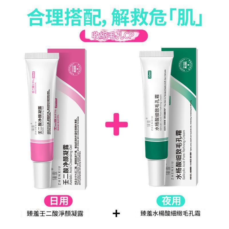 ZHENXIU 15%壬二酸淨顏凝露/水楊酸細緻毛孔霜套裝 30ml/支