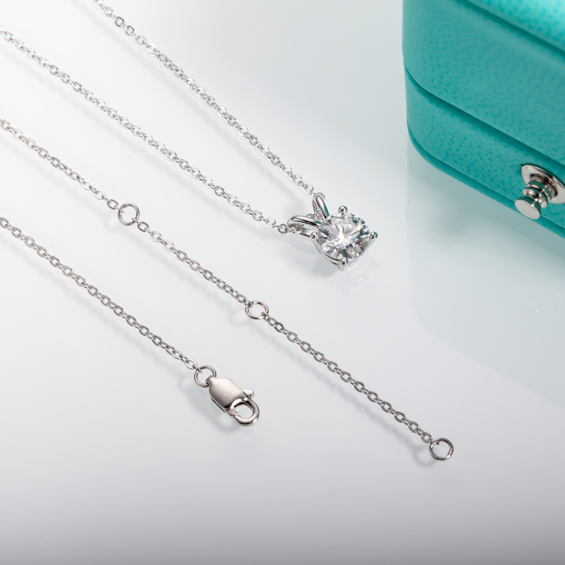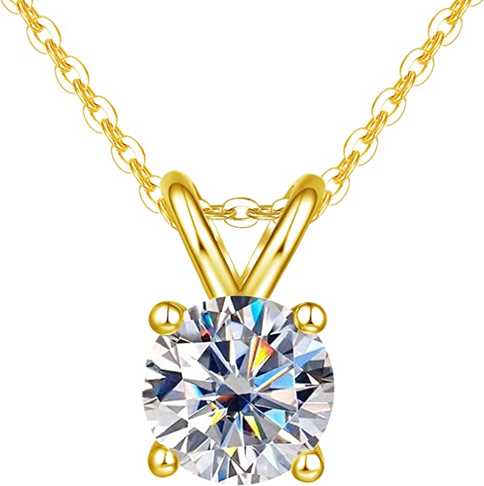 Zhubobo 1卡莫桑石吊墜項鍊 VVS1圓形切割四爪莫桑鑽18K鍍金925純銀項鍊