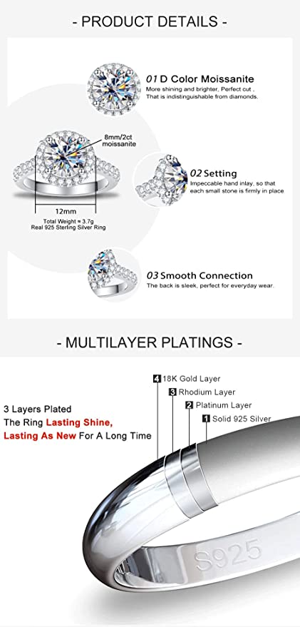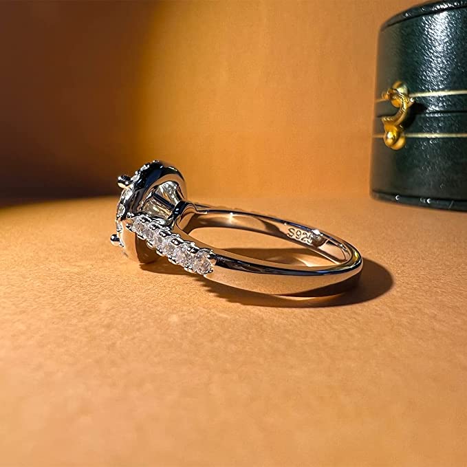 Zhubobo 2卡莫桑鑽光環訂婚戒指 純銀女式承諾戒指