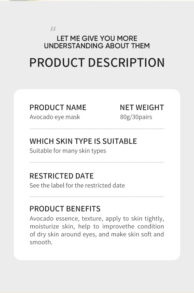 酪梨精華 (Avocado Extract):富含維生素與脂肪酸,深層滋養,提升眼周彈性與柔軟度。