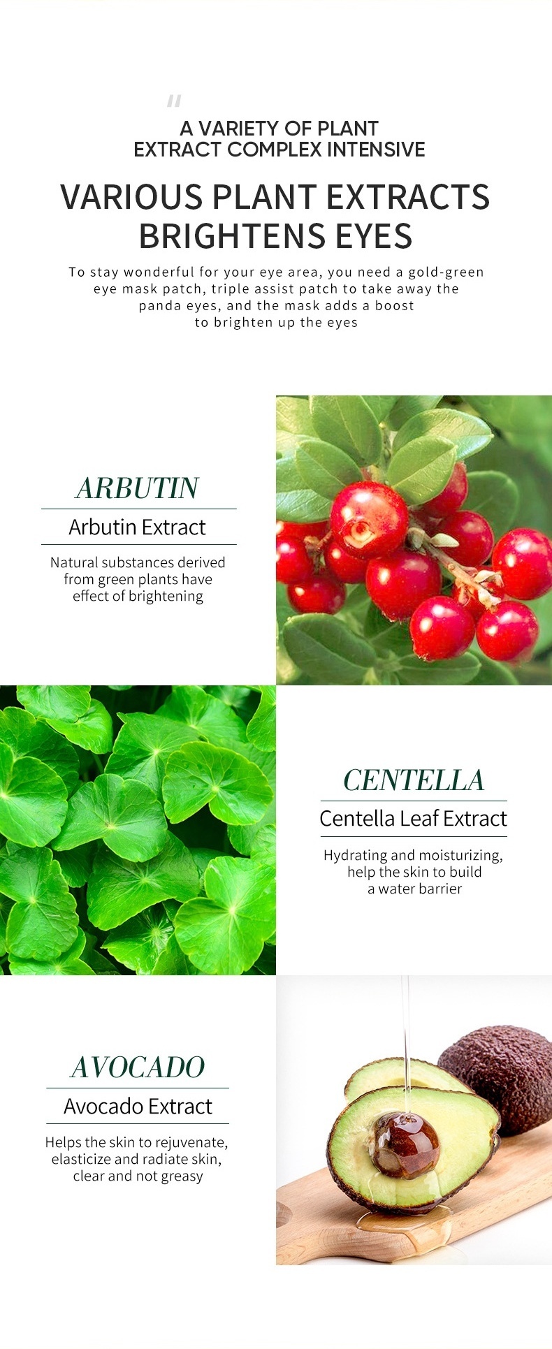 熊果苷 (Arbutin):萃取自天然綠色植物,溫和提亮眼周,改善色素沉澱與暗沉。