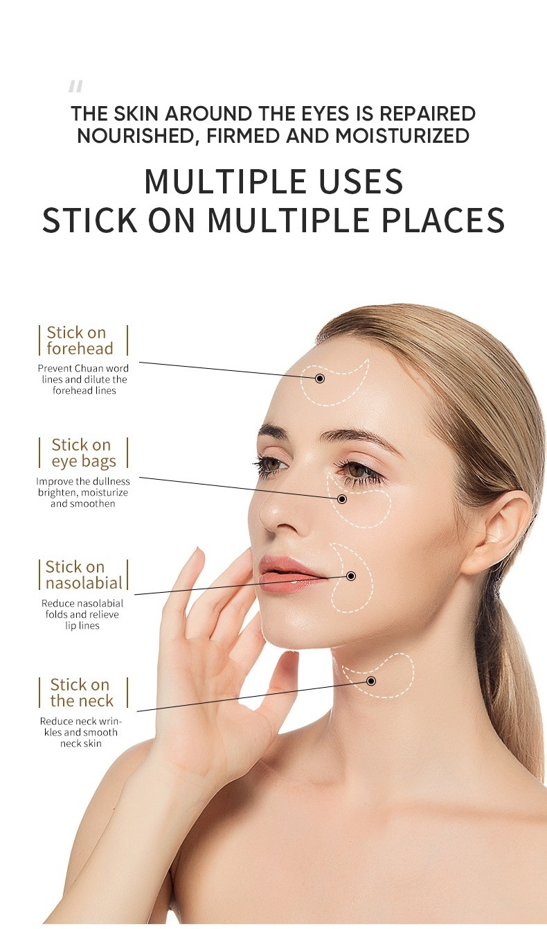 一膜多用:亦可敷於 額頭、眼袋、法令紋、頸部 等處,全面修護肌膚紋理。